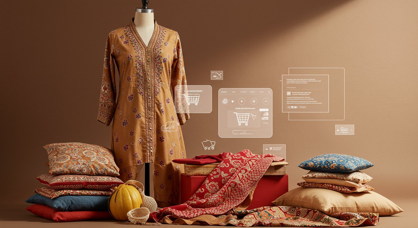 インドのECプラットフォームでファッションアイテムを選ぶ様子を表現したコンセプト画像