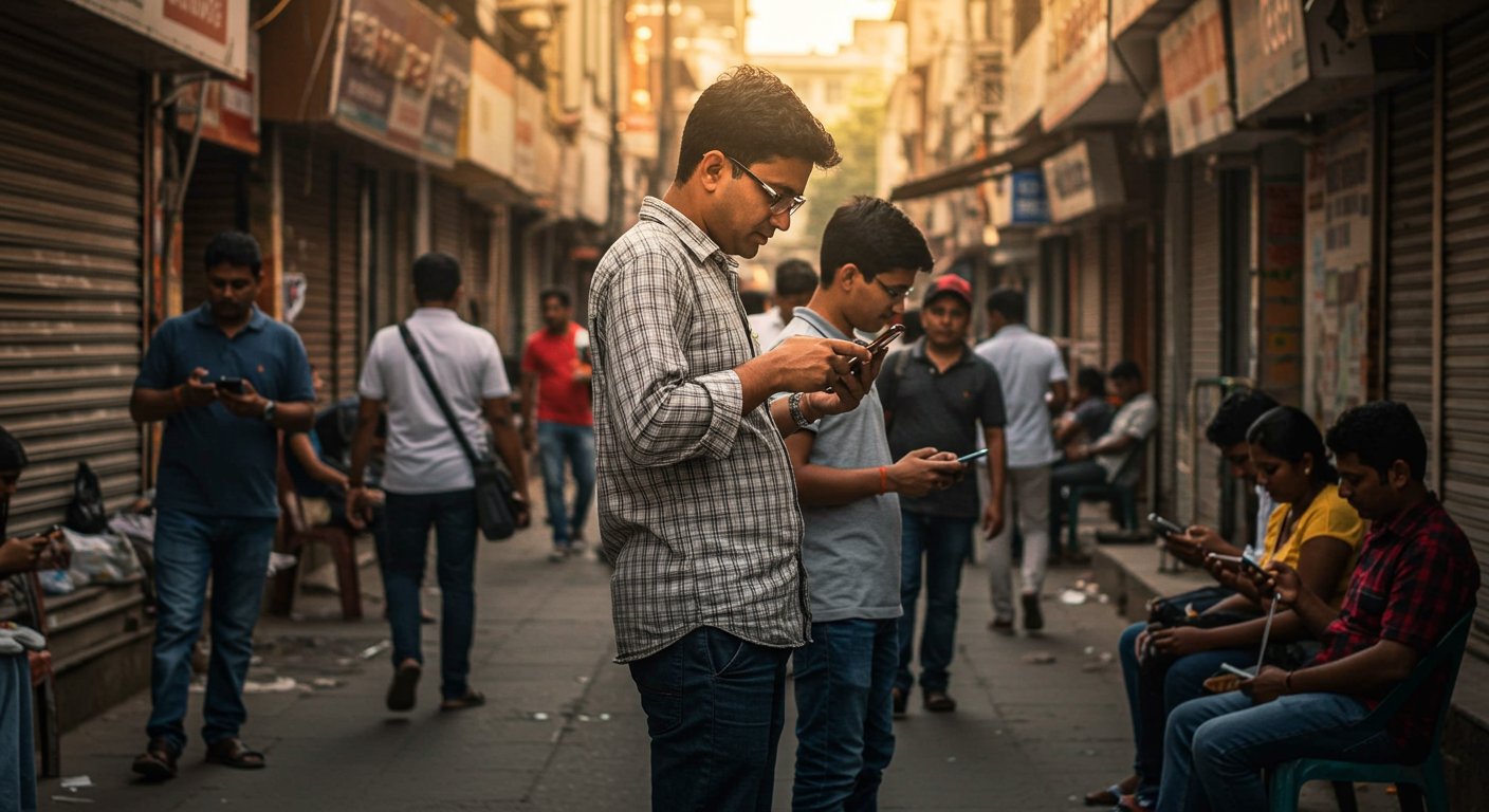 インドはスマートフォン中心のインターネット利用が主流です。携帯電話契約数は11億2,000万件で人口比76.6%を維持しており、多くのユーザーがモバイルデバイスからウェブにアクセスしています。
