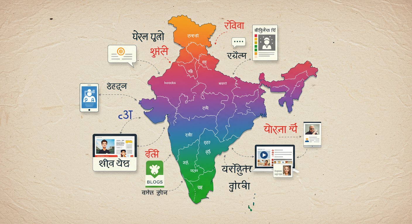 インドでコンテンツマーケティングを成功させる第一の鍵は、適切な言語戦略です。英語はビジネスや高等教育で広く使われていますが、より広いリーチを得るには地域言語への対応が不可欠です。